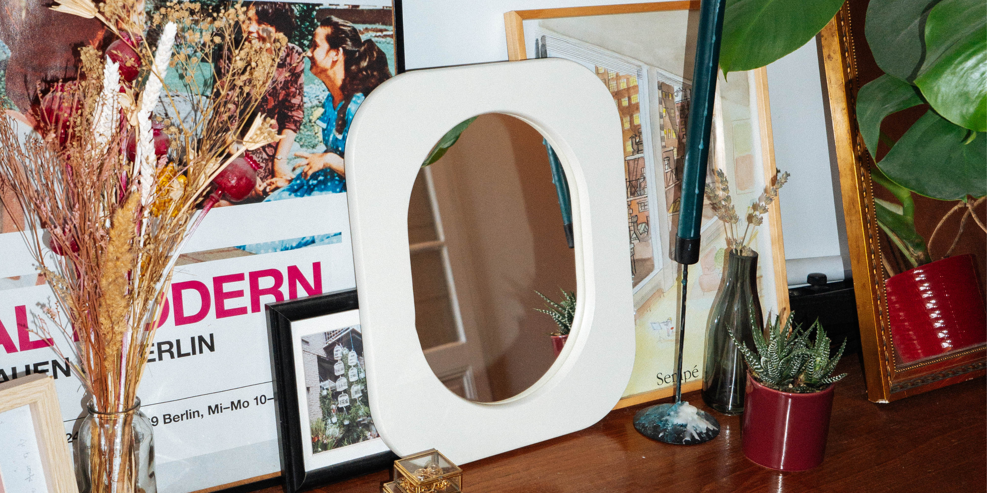 Facile à monter et démonter, le cadre Klipo est compatible avec des miroirs basiques Ikea. (Parfait quand vous êtes en location)