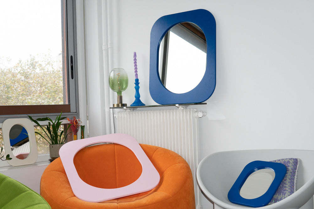 Le miroir a cadres interchangeables Klipo est 2 à 3 fois moins cher que des miroirs de designer (Prix moyen constaté pour des pièces de designer)