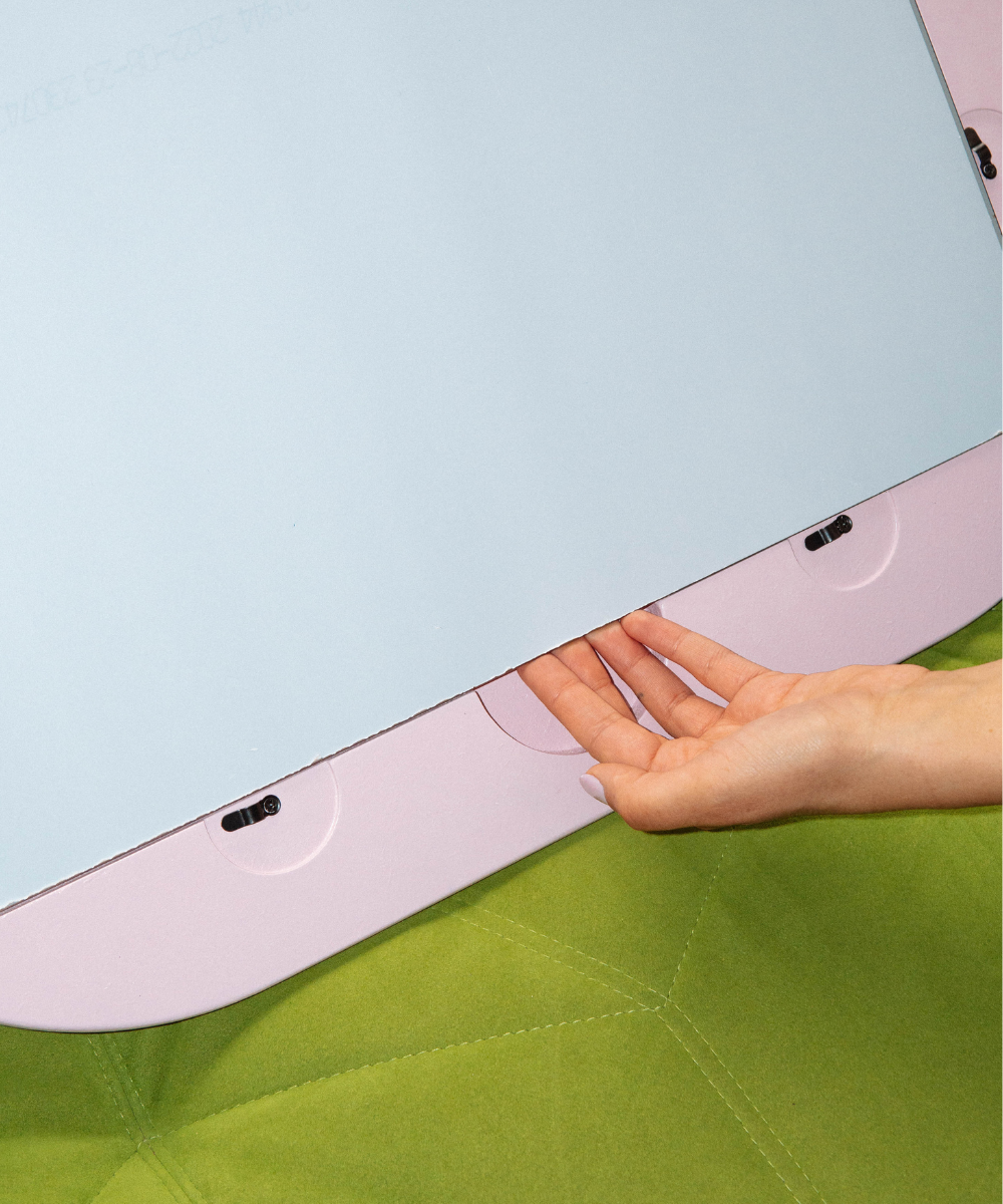Facile à monter et démonter, le cadre Klipo est compatible avec des miroirs basiques Ikea. (Parfait quand vous êtes en location)